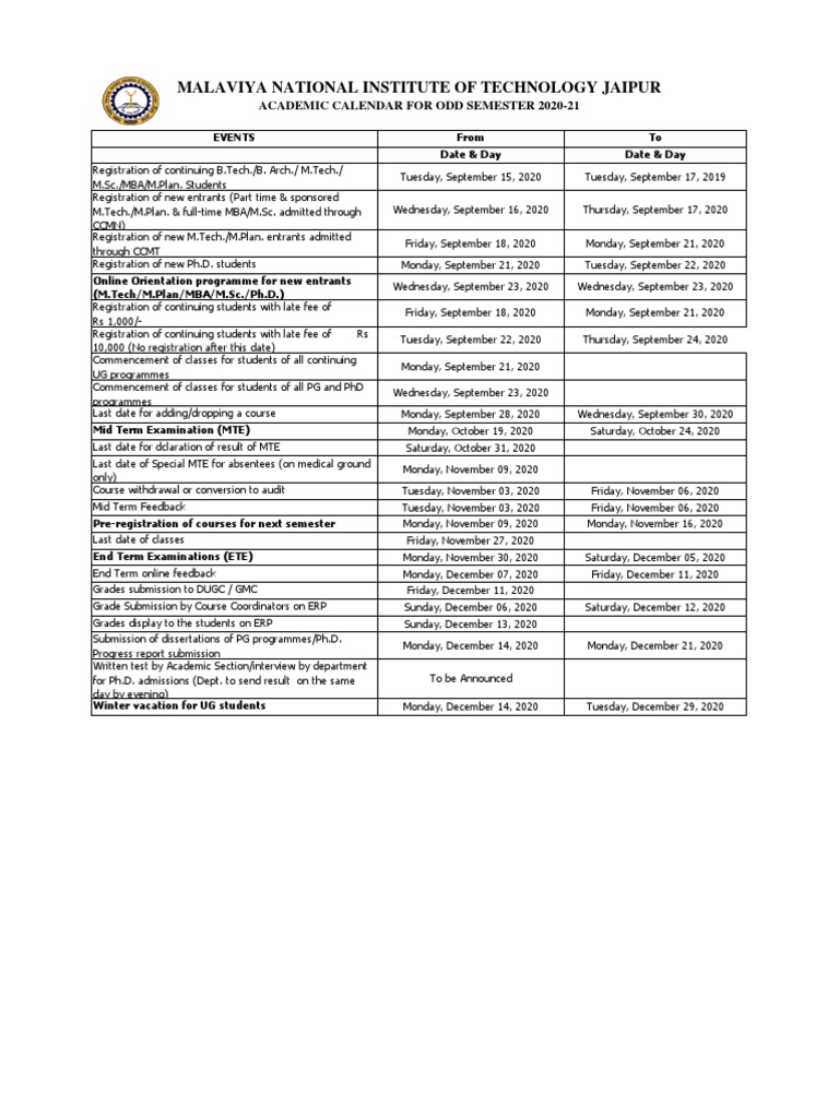 Academic Calendar Odd Sem 2020 21 PDF Academic Term Titles