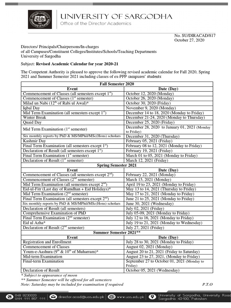 Revised Academic Calendar For Year 2020 21 UOS PDF Academic Term
