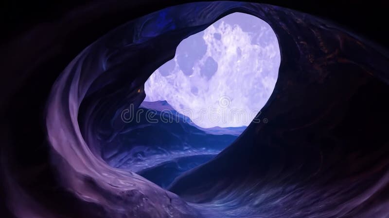 Colorful Abstract Eye Transitioning To Moon Over Alien Landscape Stock
