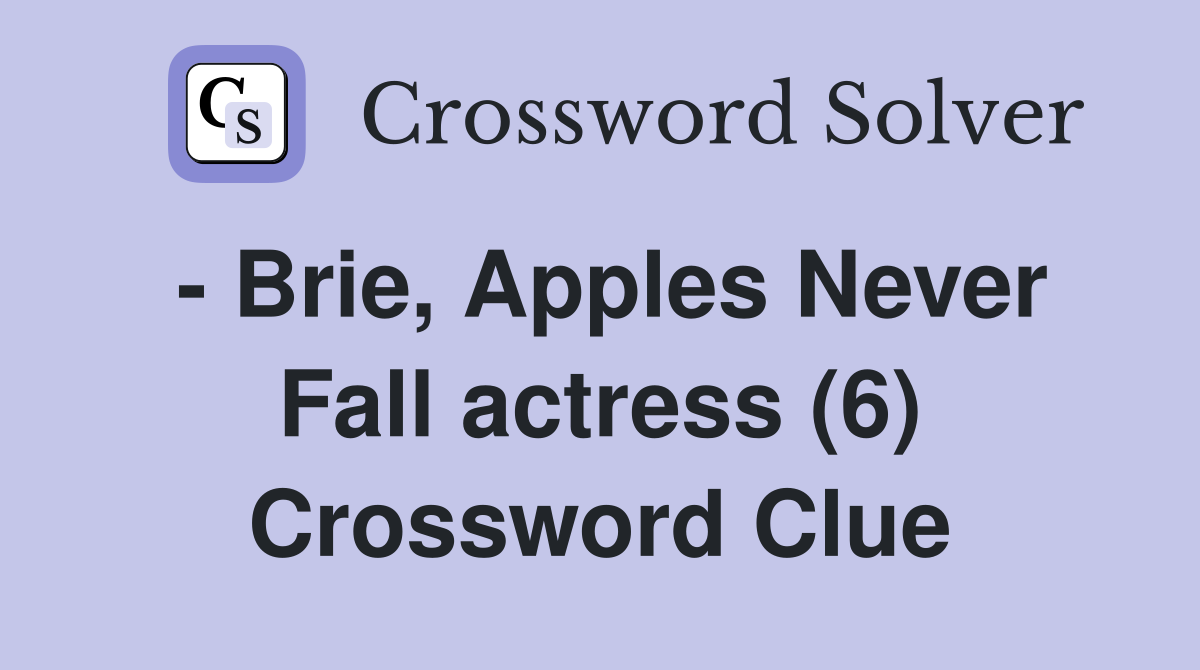 Brie Apples Never Fall actress (6) Crossword Clue Answers