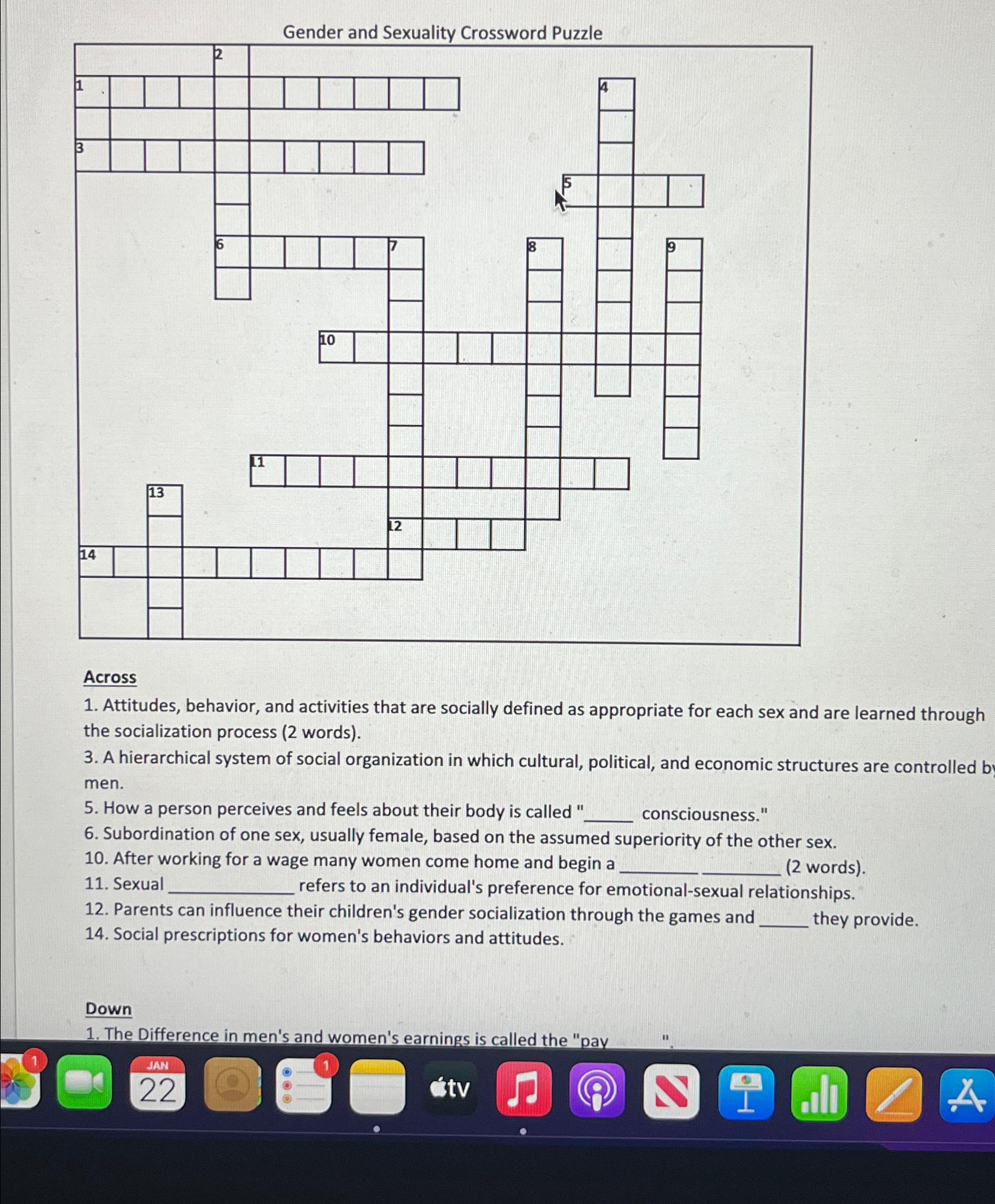 Solved Gender and Sexuality Crossword PuzzleAcrossAttitudes Chegg com