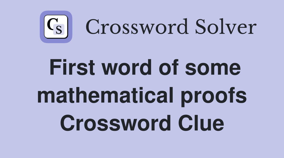 First word of some mathematical proofs Crossword Clue Answers