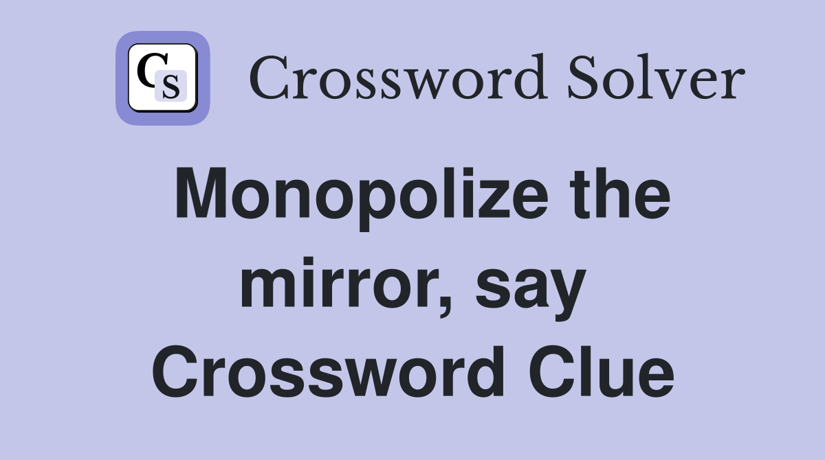 Monopolize the mirror say Crossword Clue Answers Crossword Solver