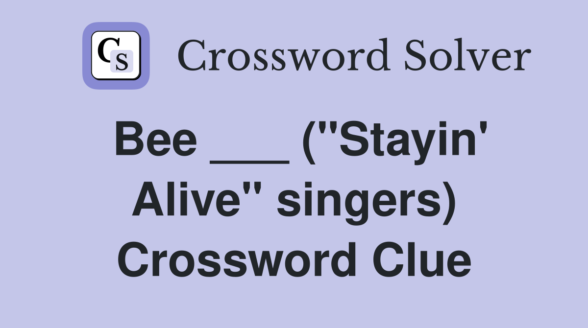 Bee ( quot Stayin #39 Alive quot singers) Crossword Clue Answers Crossword