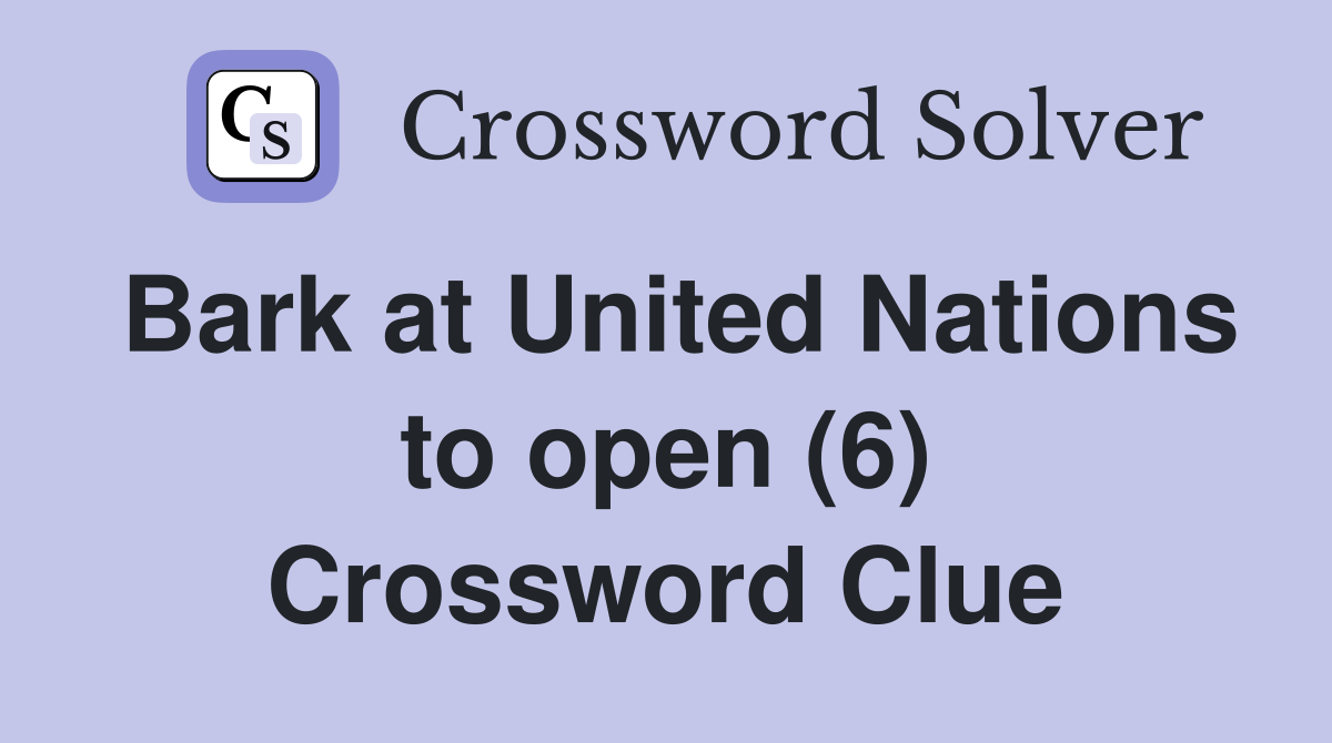 Bark at United Nations to open (6) Crossword Clue Answers Crossword