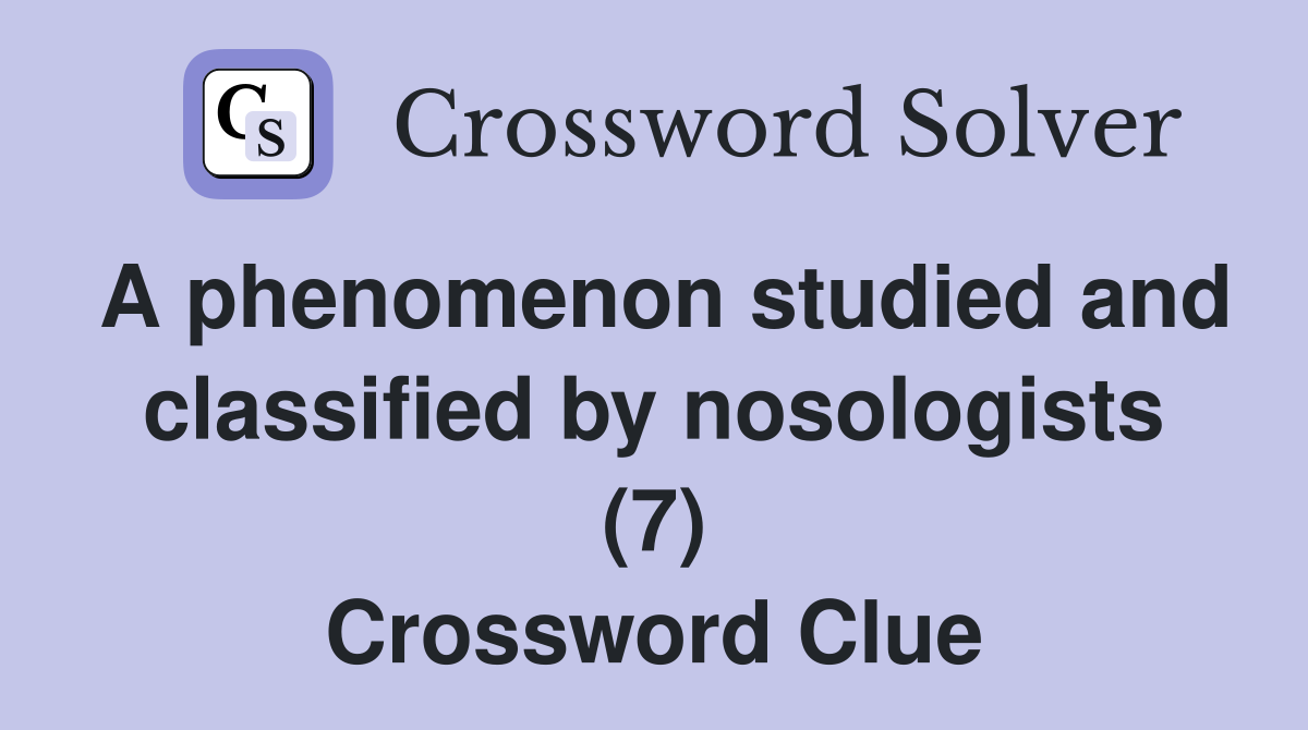 A phenomenon studied and classified by nosologists (7) Crossword Clue