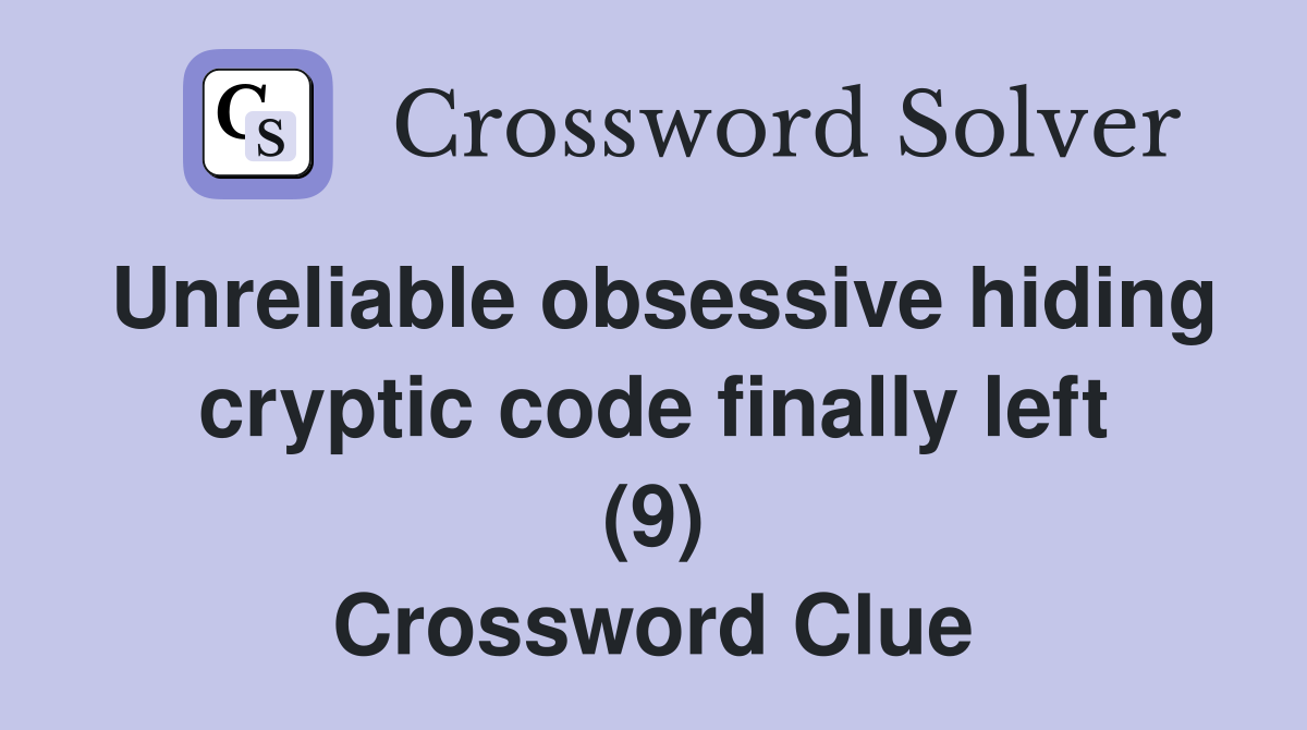 Unreliable obsessive hiding cryptic code finally left (9) Crossword