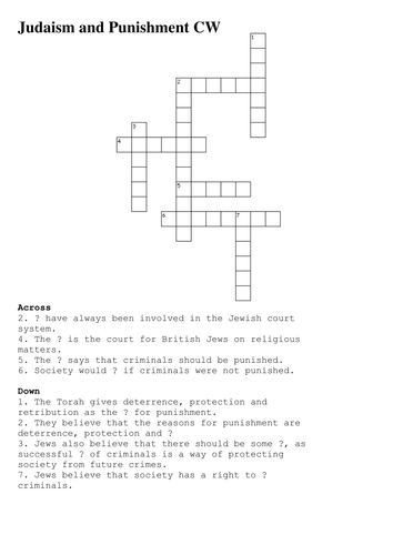 Judaism Crossword Teaching Resources