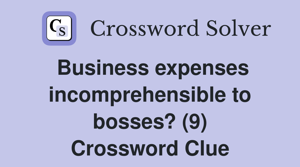 Business expenses incomprehensible to bosses? (9) Crossword Clue