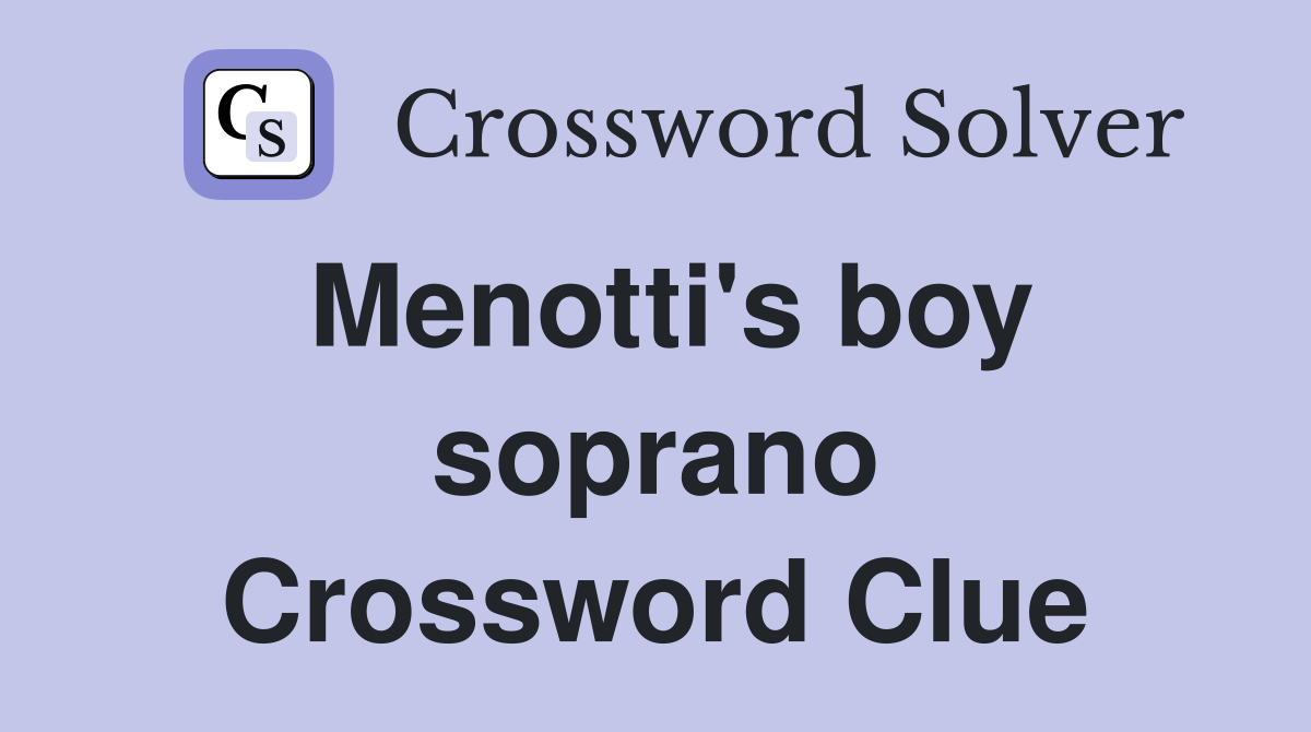 Menotti #39 s boy soprano Crossword Clue Answers Crossword Solver