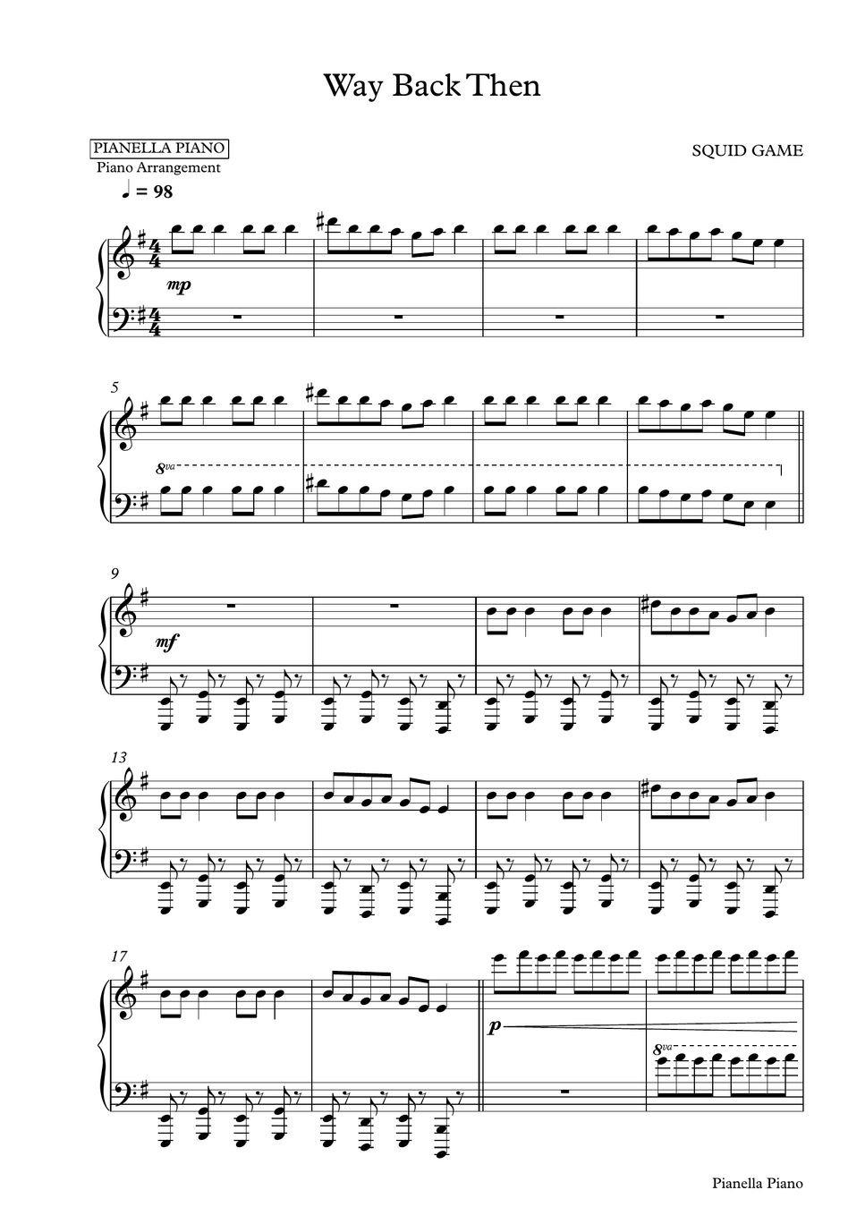 SQUID GAME WAY BACK THEN (Piano Sheet) Nuty by Pianella Piano
