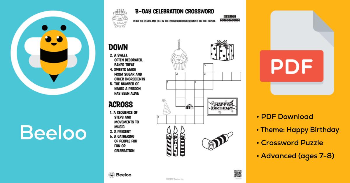 B Day Celebration Crossword Puzzle • Beeloo Printable Crafts and
