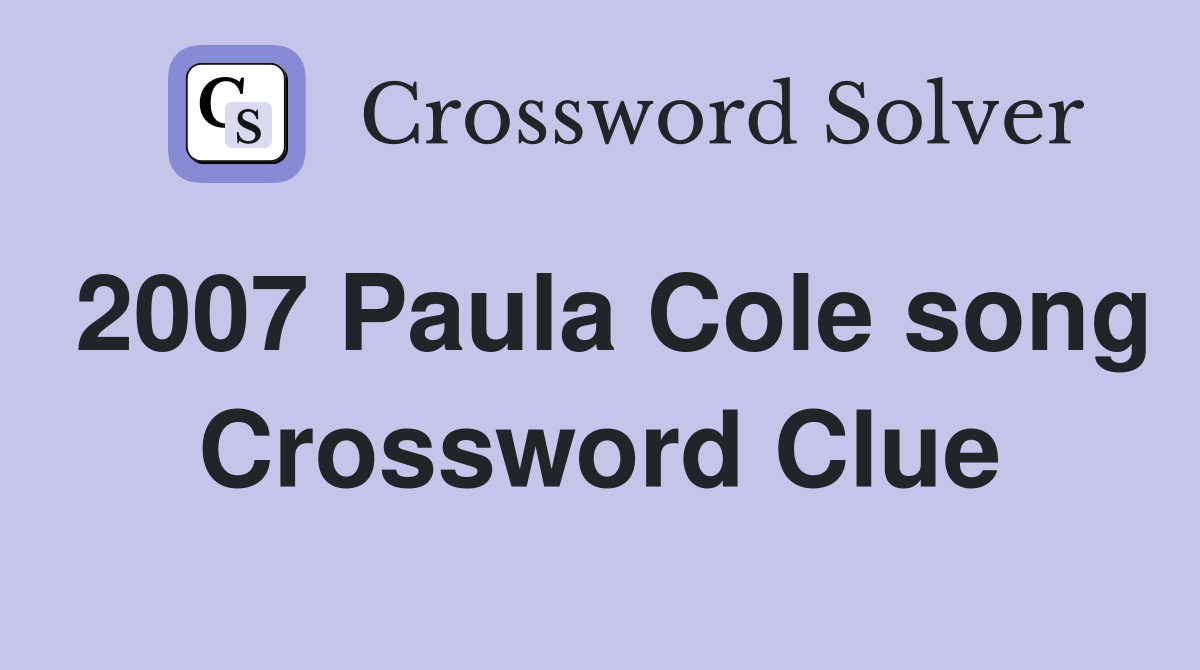 2007 Paula Cole song Crossword Clue Answers Crossword Solver