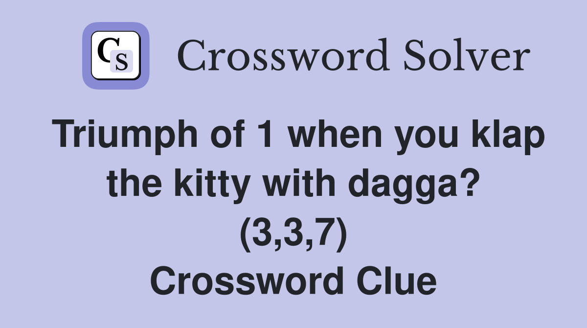 Triumph of 1 when you klap the kitty with dagga? (3 3 7) Crossword