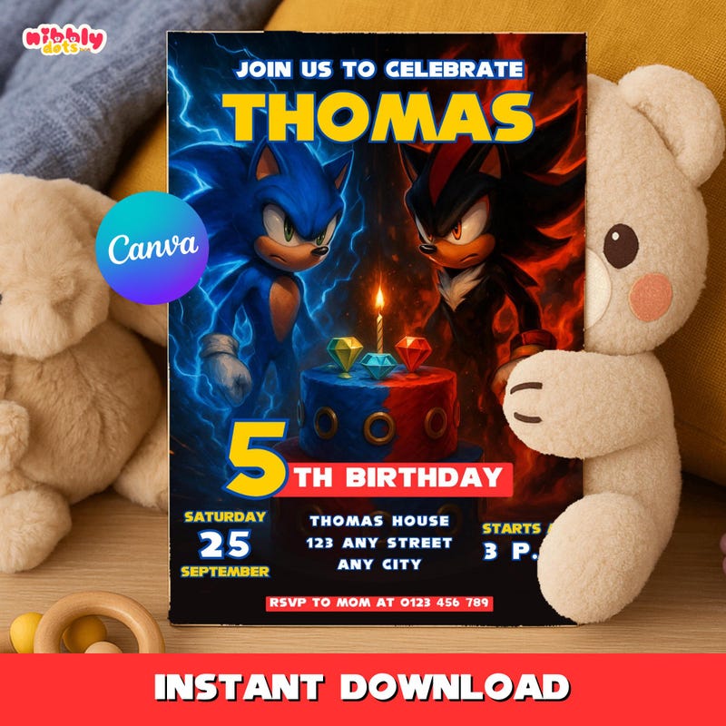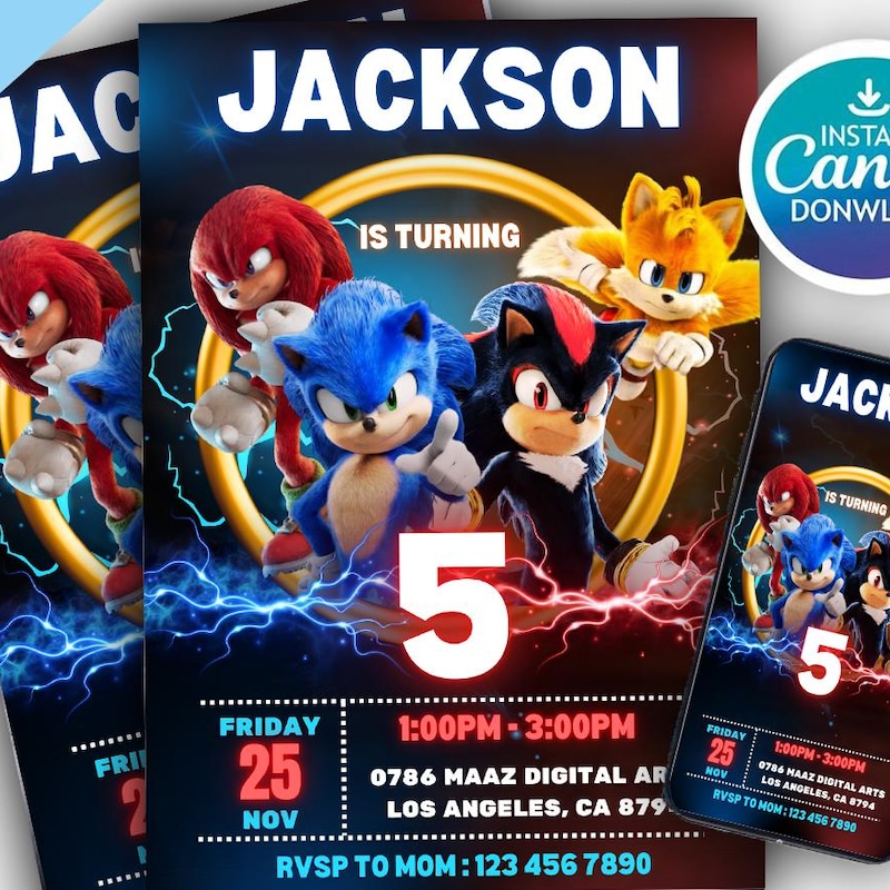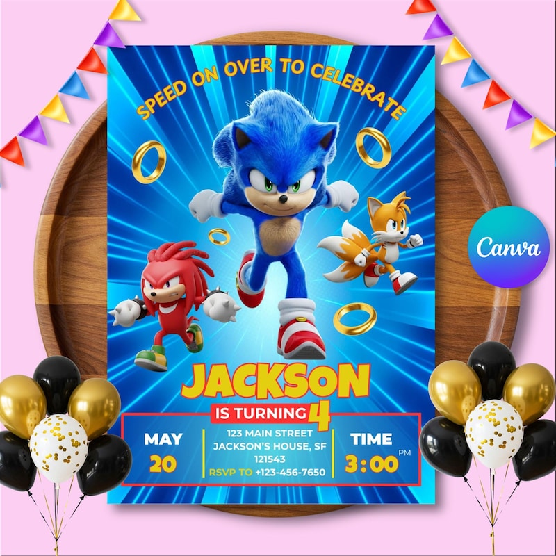 20 Sonic the Hedgehog Canva Birthday Invitation Templates in 2023