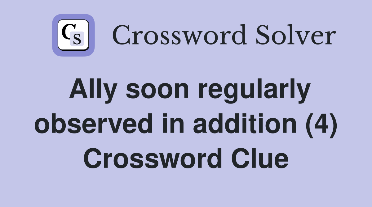 Ally soon regularly observed in addition (4) Crossword Clue Answers