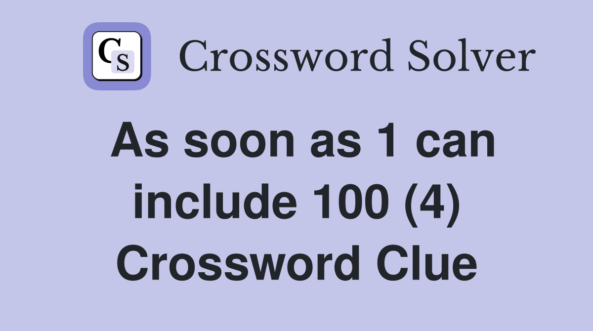 As soon as 1 can include 100 (4) Crossword Clue Answers Crossword