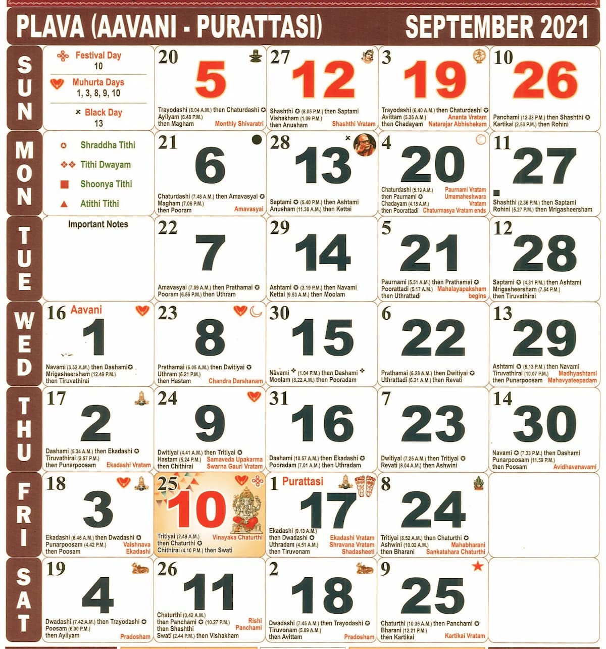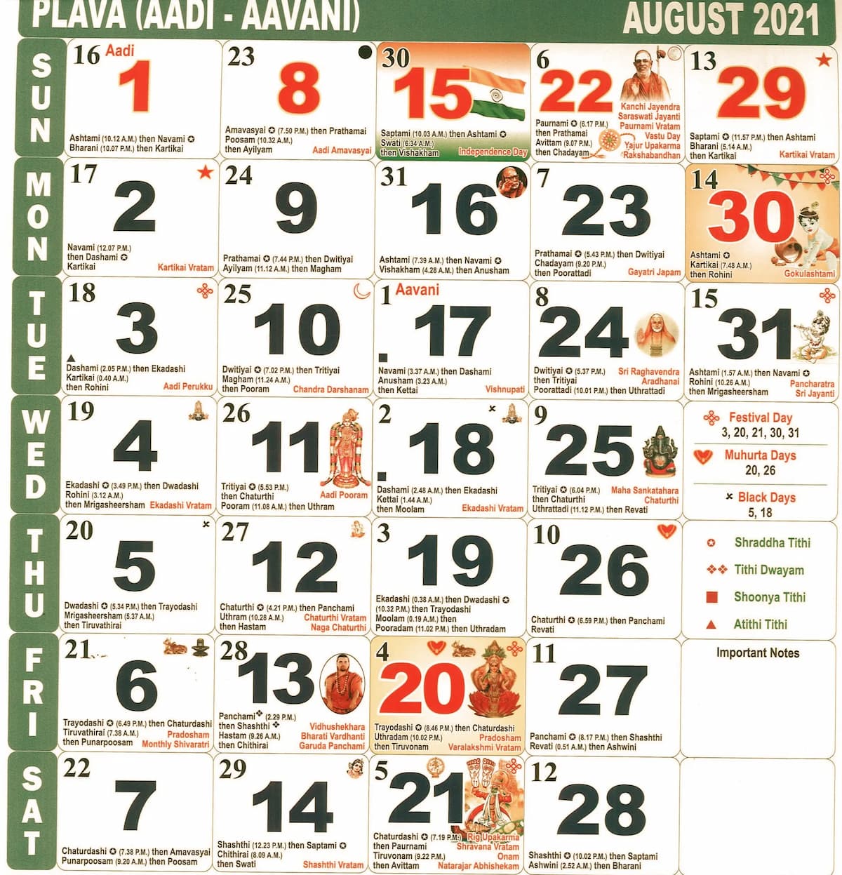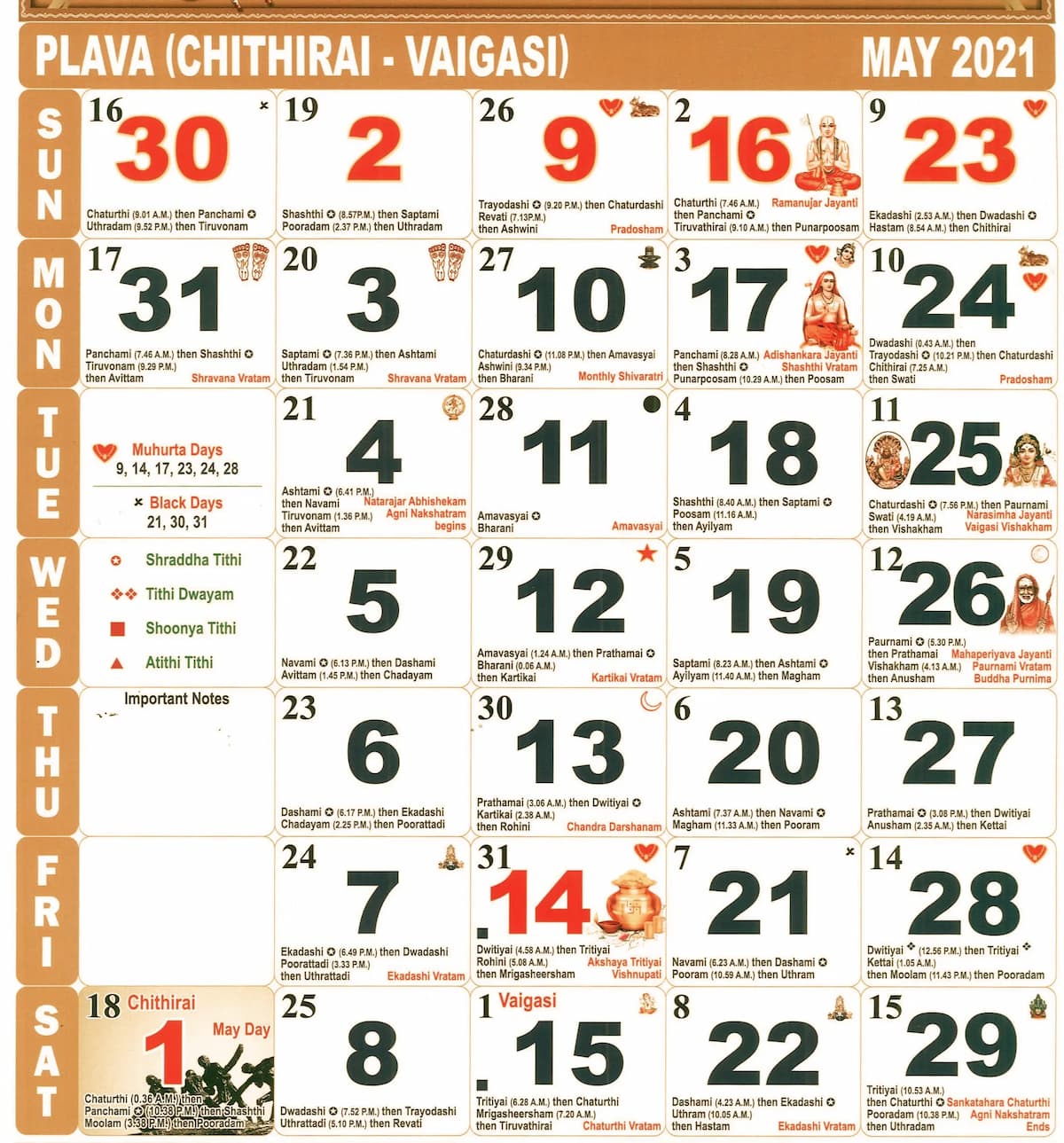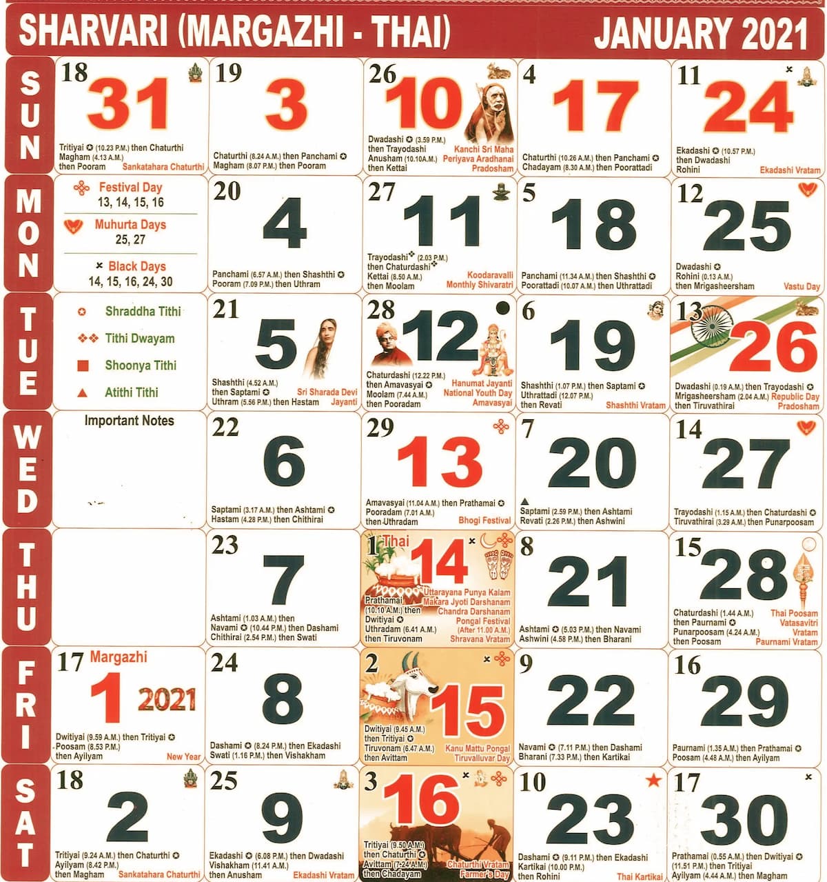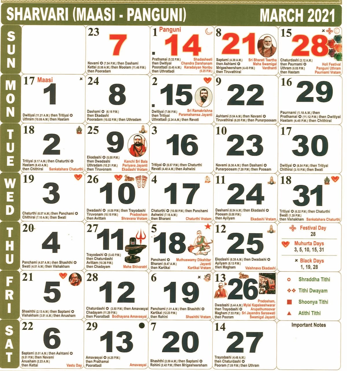 Monthly Calendar for 2021 TamilNaalKaati தமிழ் நாள்காட்டி