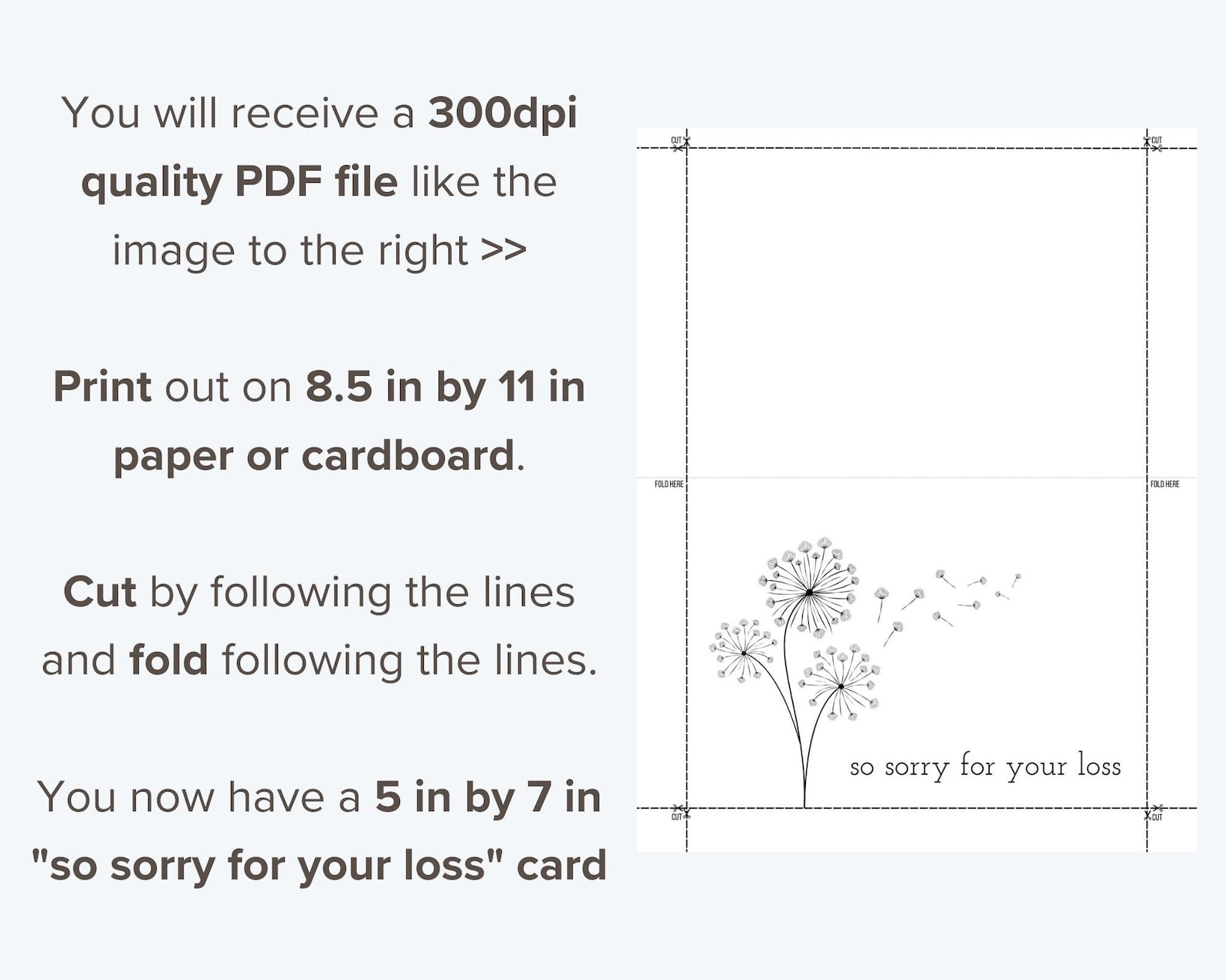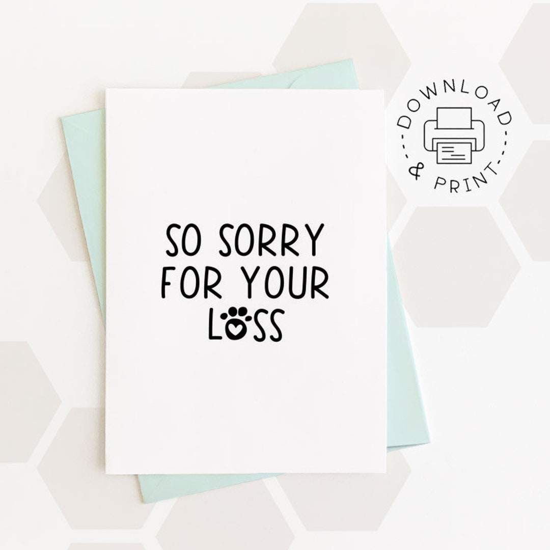 So Sorry for Your Loss Printable Card / Instant Download PDF / Etsy