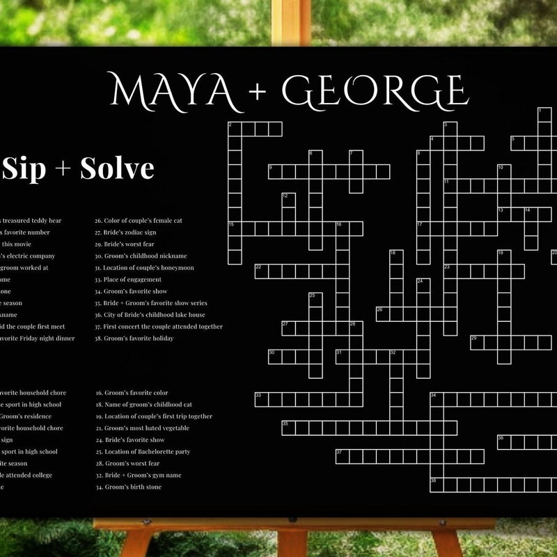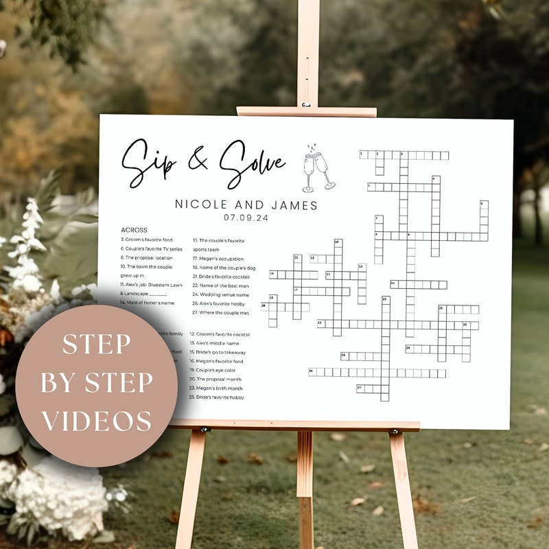 Custom Sip and Solve Questions Wedding Crossword Puzzle Sip Etsy