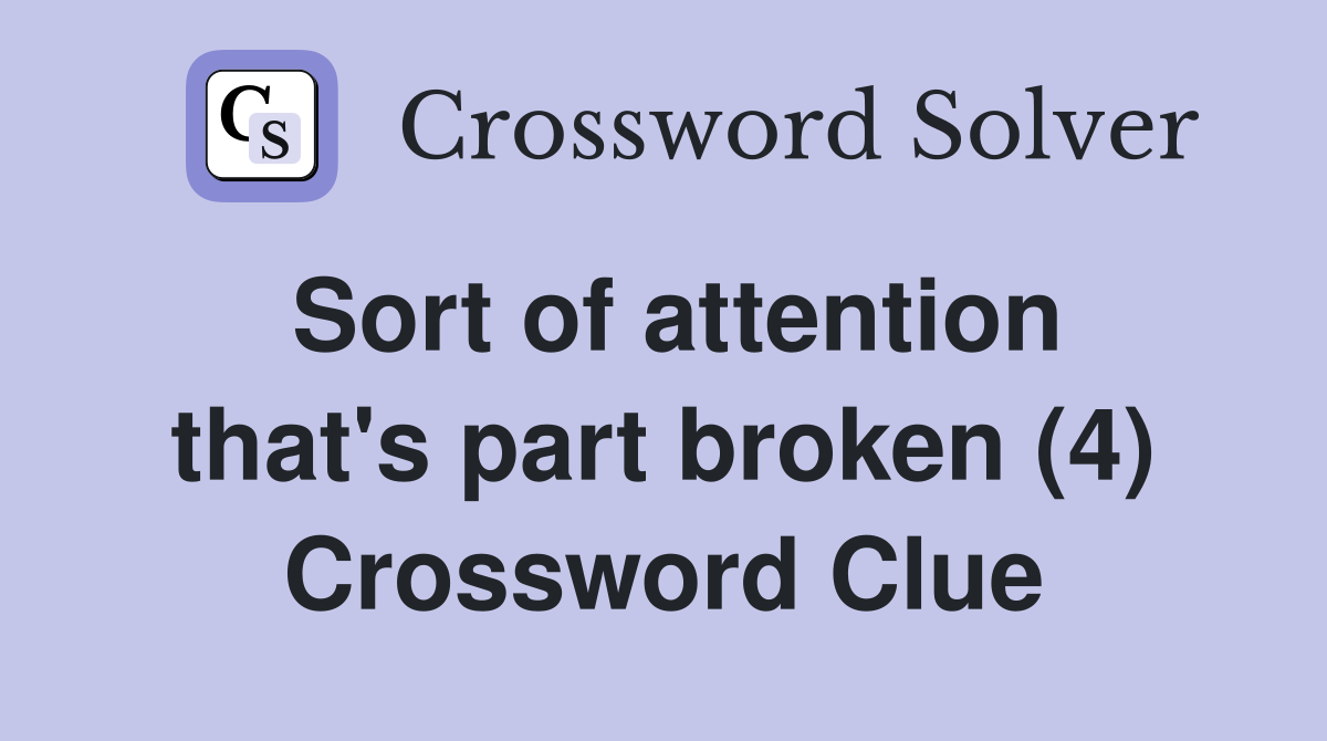 Sort of attention that #39 s part broken (4) Crossword Clue Answers