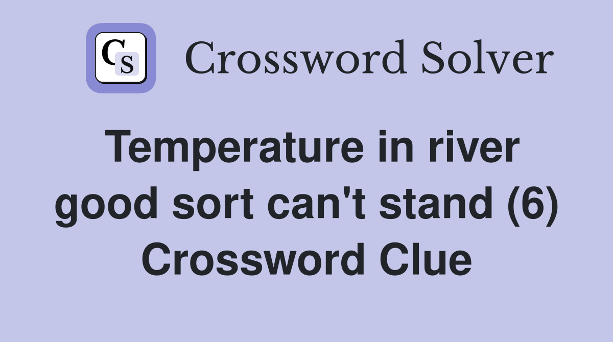 Temperature in river good sort can #39 t stand (6) Crossword Clue Answers