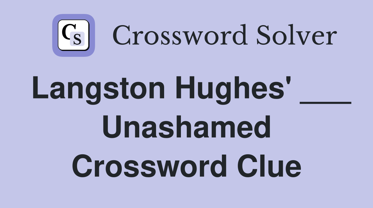 Langston Hughes #39 Unashamed Crossword Clue Answers Crossword Solver