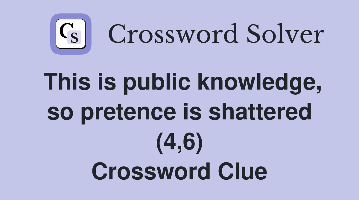 This is public knowledge so pretence is shattered (4 6) Crossword