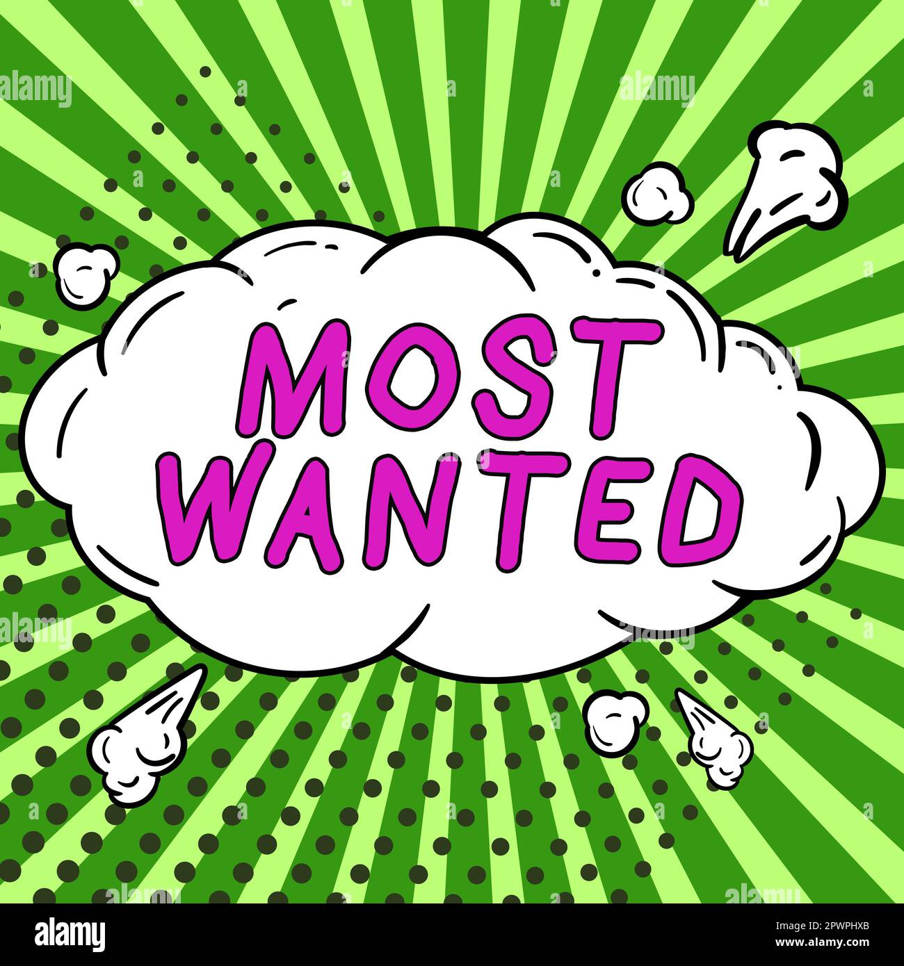 Conceptual display Most Wanted Concept meaning listing of the names of