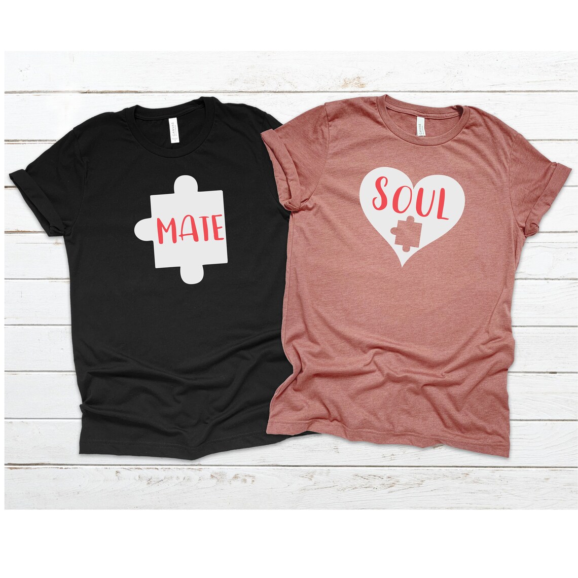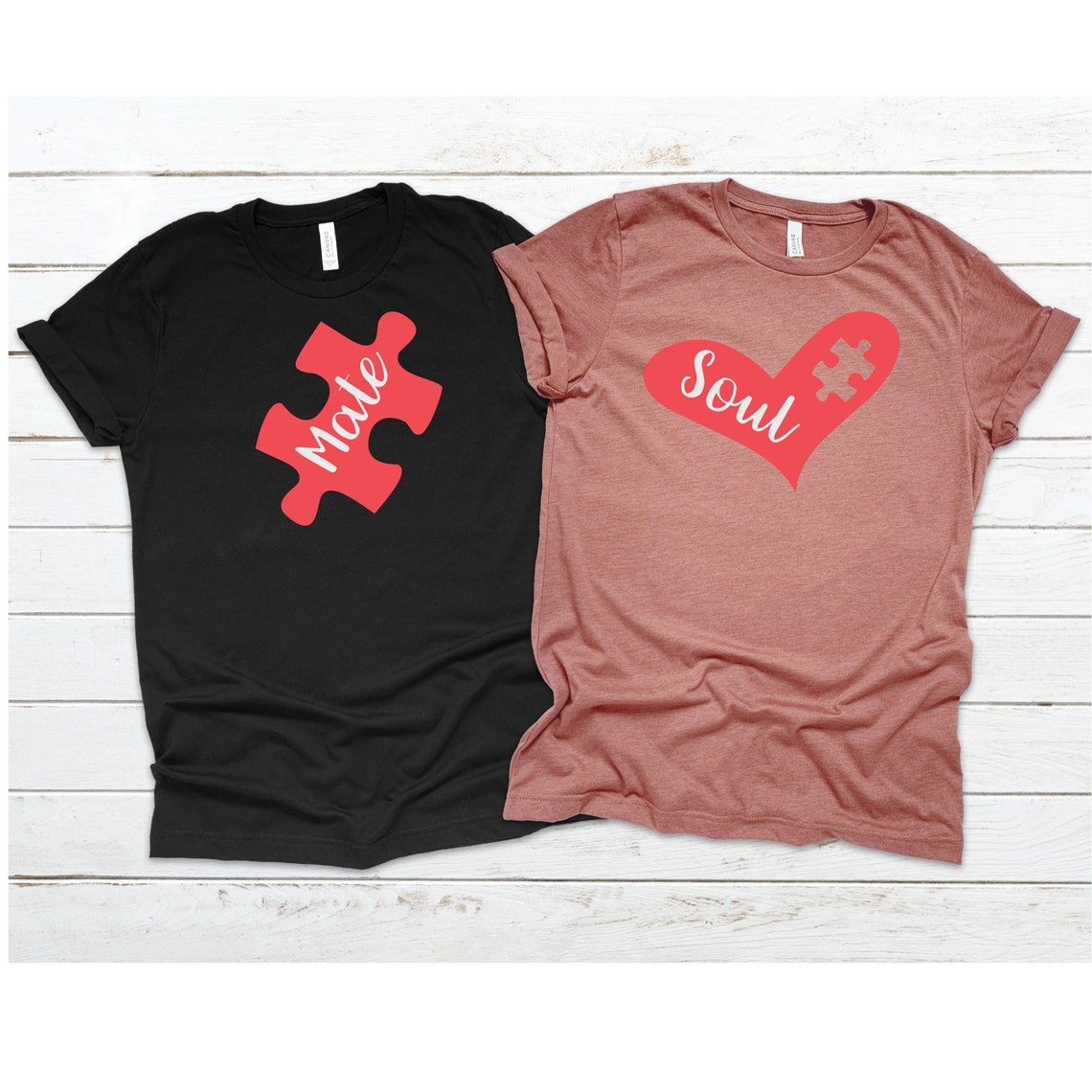 Soul Mate Puzzle Matching Couples Tee Straight Up Fun