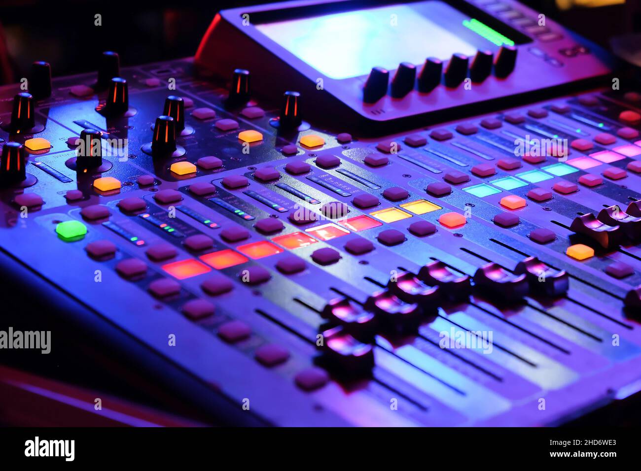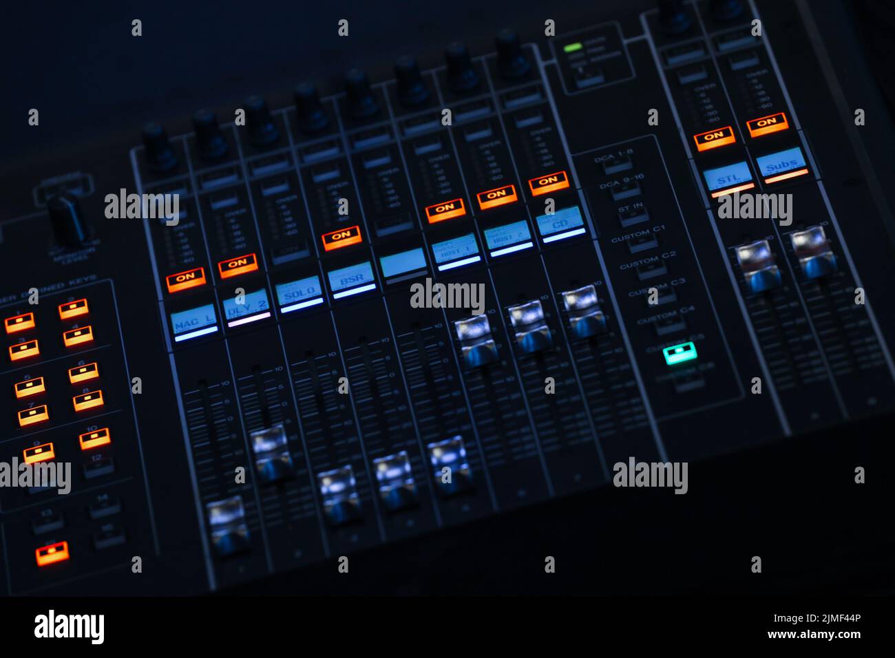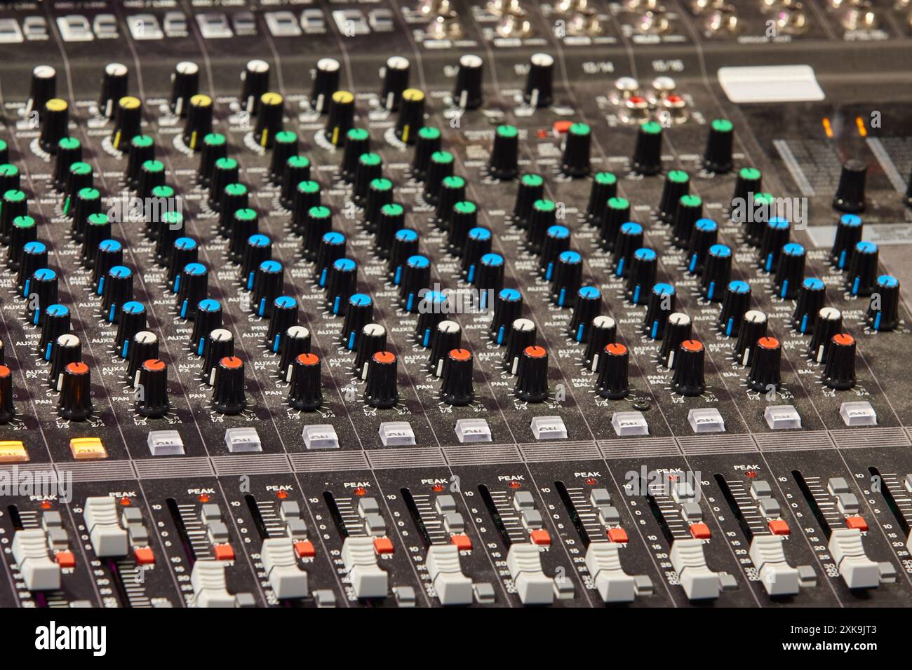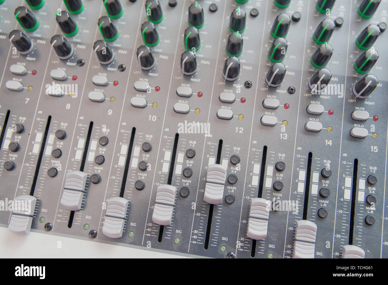 Closeup of an audio mixing control panel Stock Photo Alamy