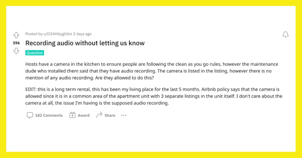 Airbnb Guest Blasts Host for Recording Audio via Camera