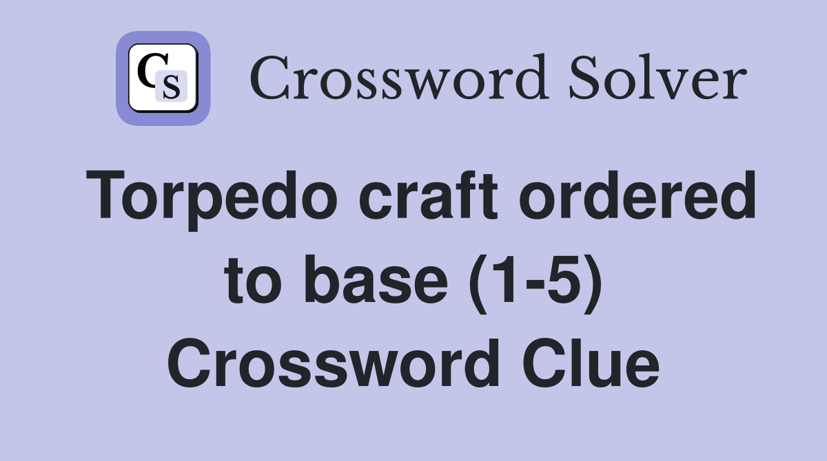 Torpedo craft ordered to base (1 5) Crossword Clue Answers