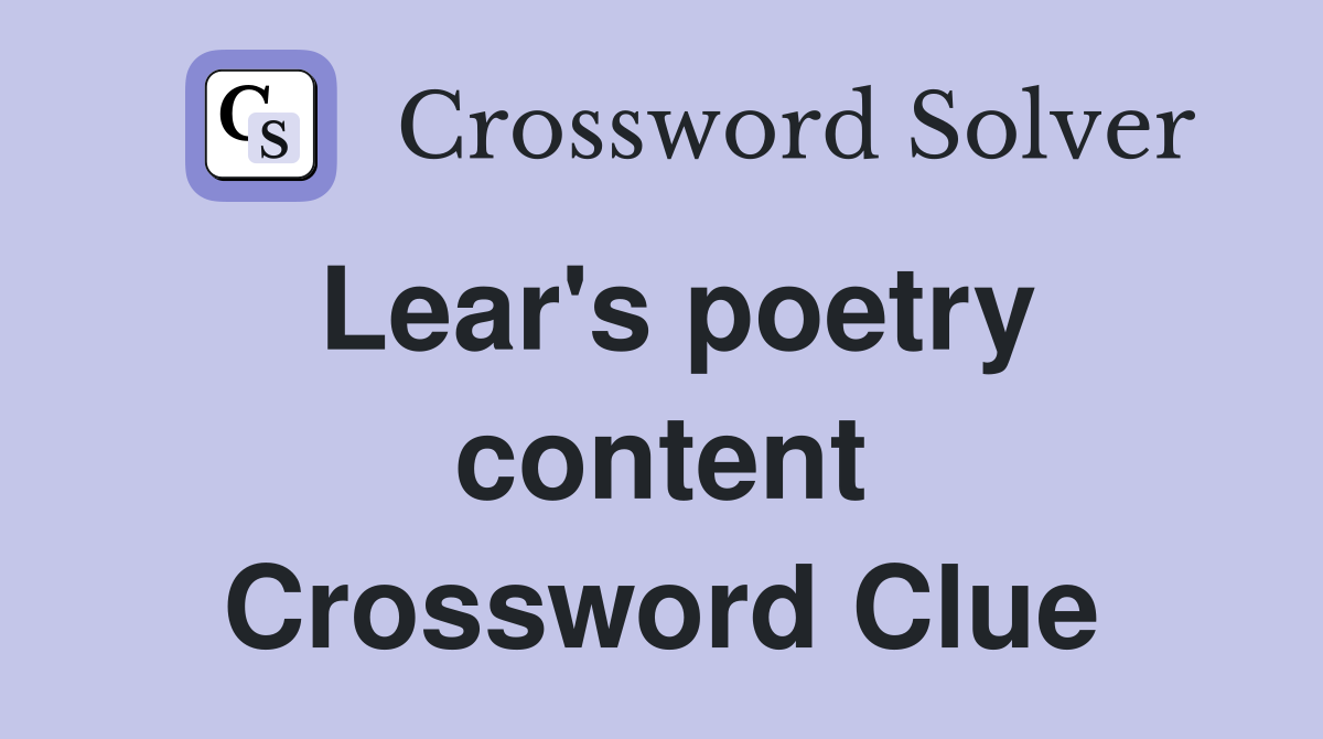 Lear #39 s poetry content Crossword Clue Answers Crossword Solver