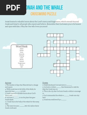 Jonah Crossword Puzzle Jonah and the whale Crossword puzzle Bible study