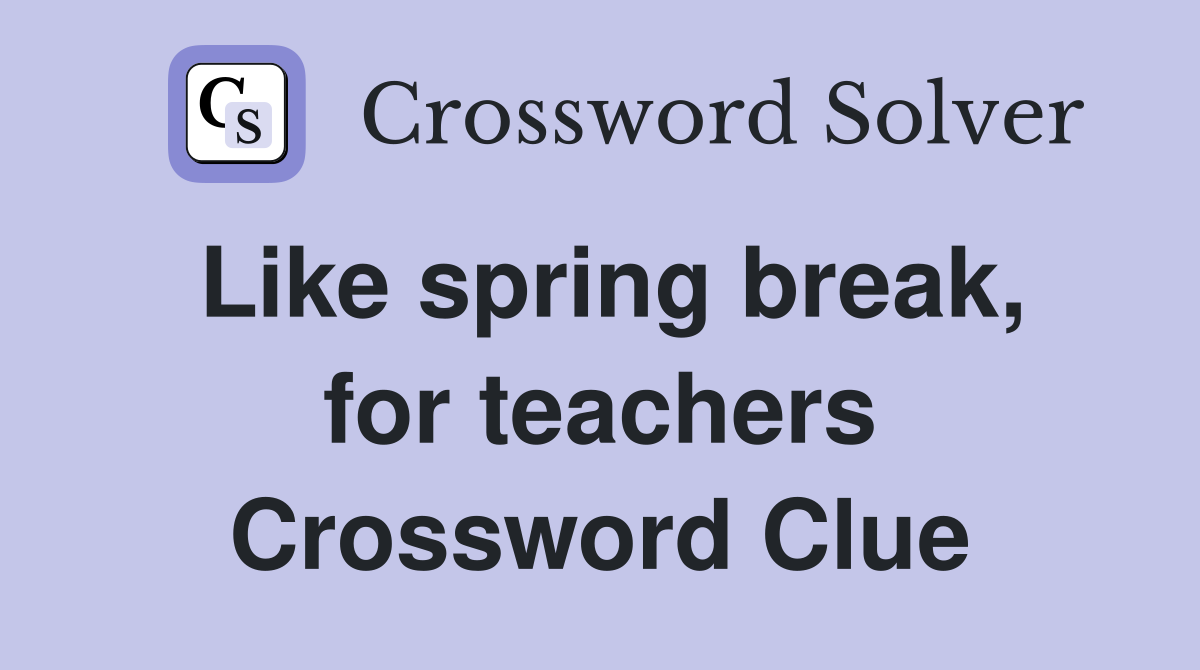 Like spring break for teachers Crossword Clue Answers Crossword Solver