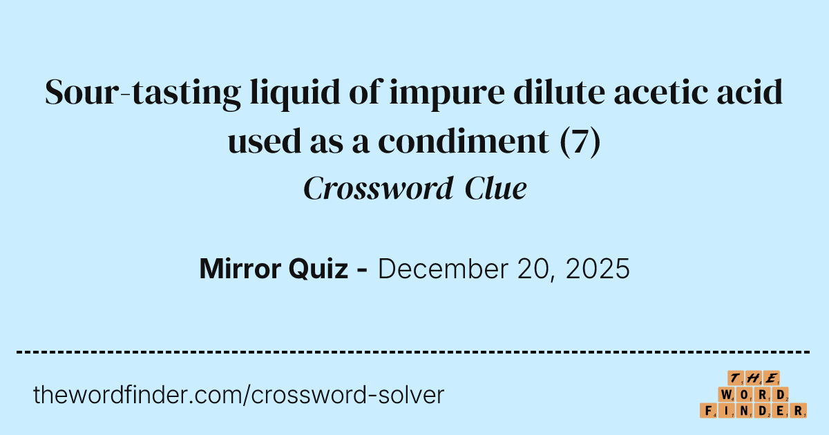 Sour tasting liquid of impure dilute acetic acid used as a condiment