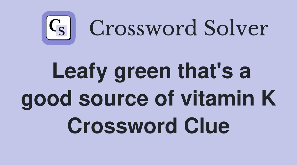 Leafy green that #39 s a good source of vitamin K Crossword Clue Answers