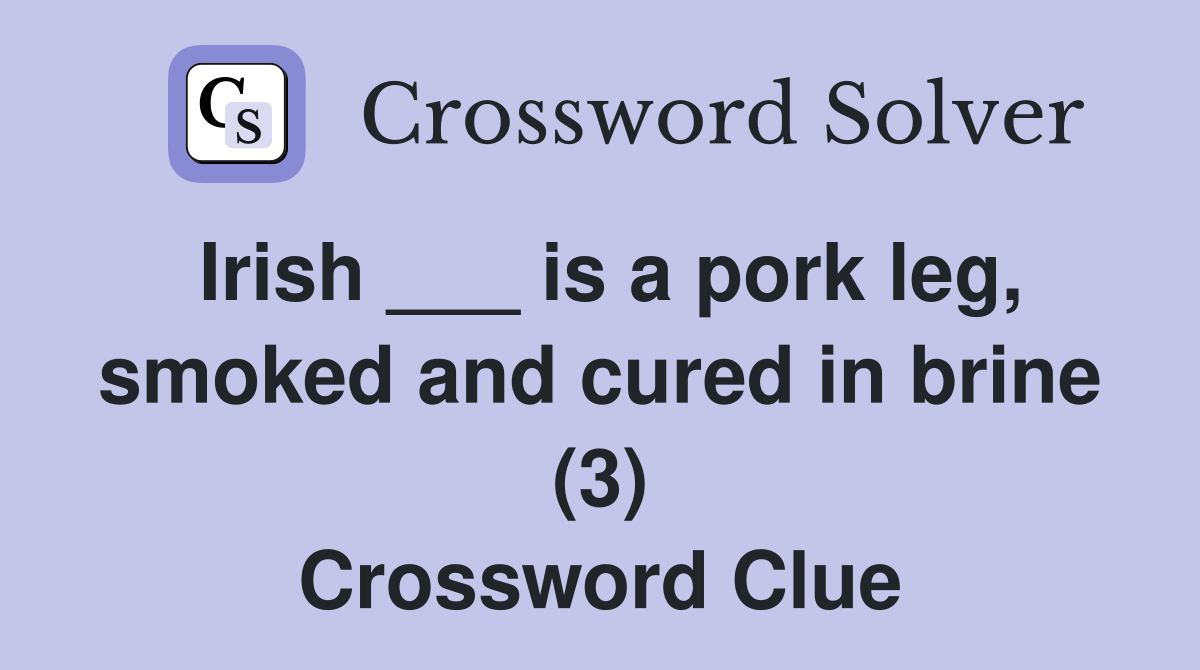 Irish is a pork leg smoked and cured in brine (3) Crossword Clue