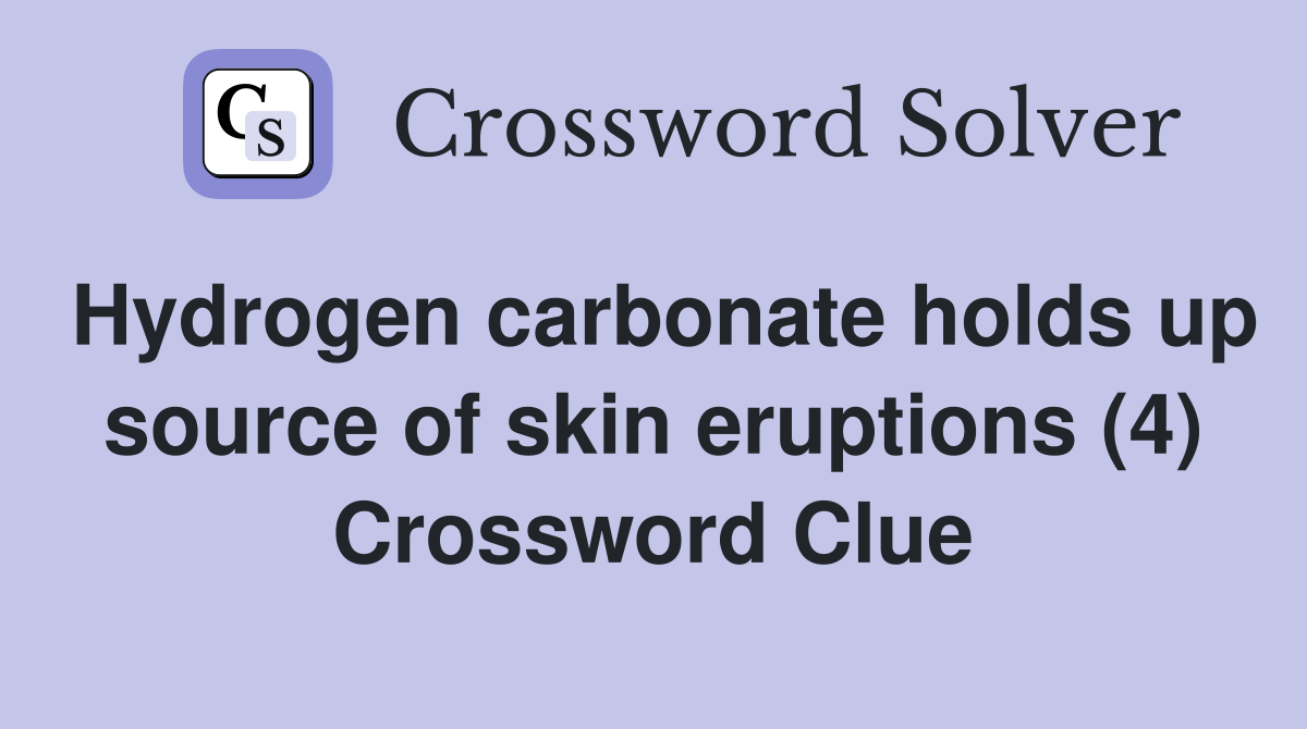 Hydrogen carbonate holds up source of skin eruptions (4) Crossword