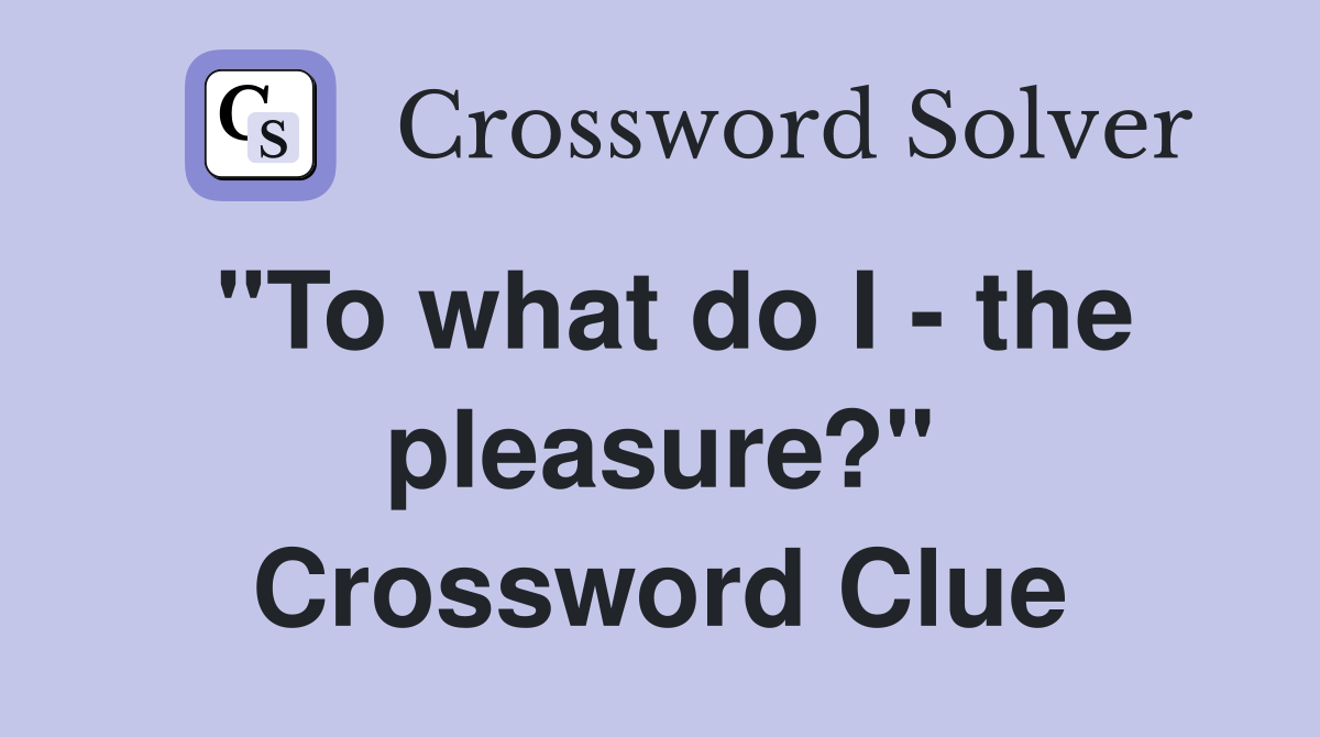 quot To what do I the pleasure? quot Crossword Clue Answers Crossword Solver