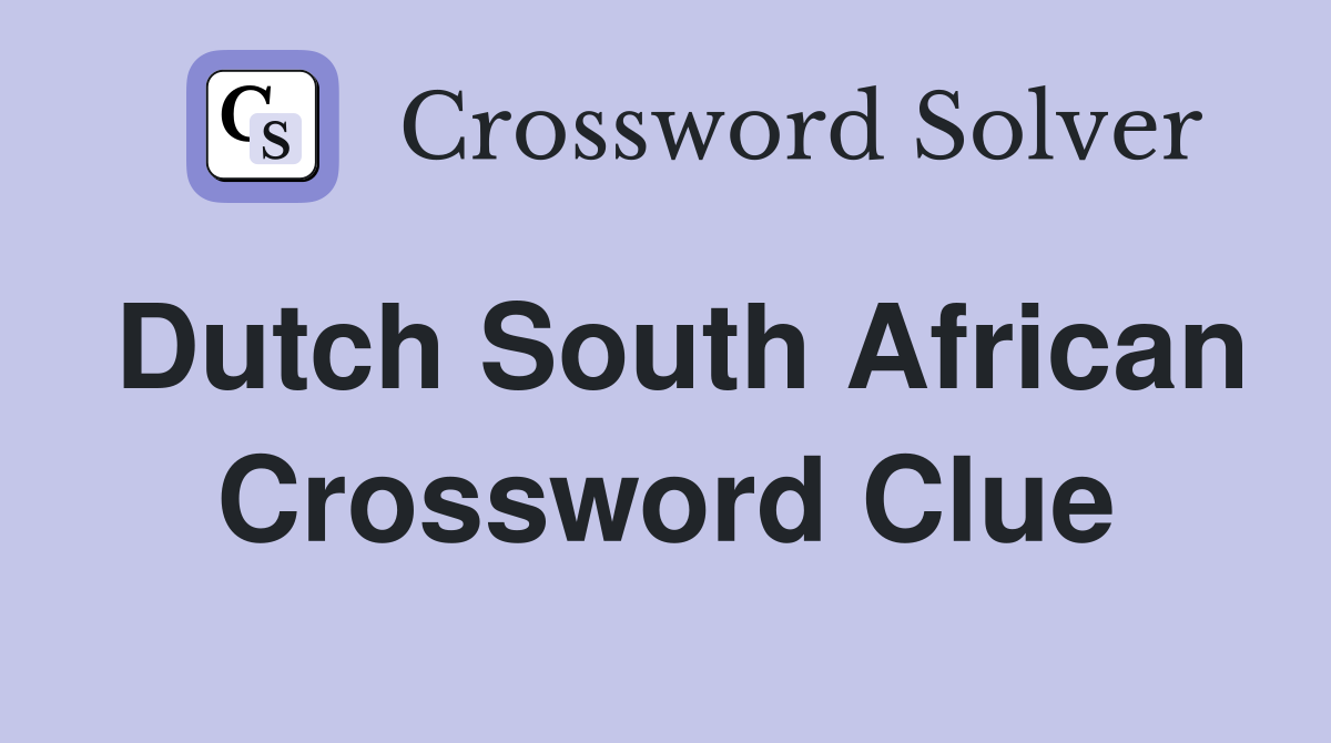 Here are some of the images for South African Dutch Crossword Clue that we found in our website database.