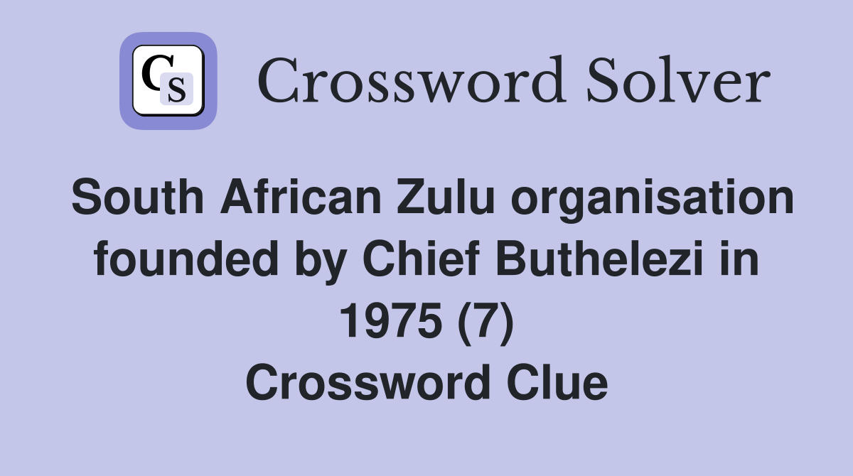South African Zulu organisation founded by Chief Buthelezi in 1975 (7