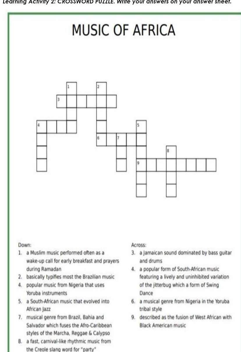 Indigenous Musical Instrument Crossword Clue Twinkl ZA