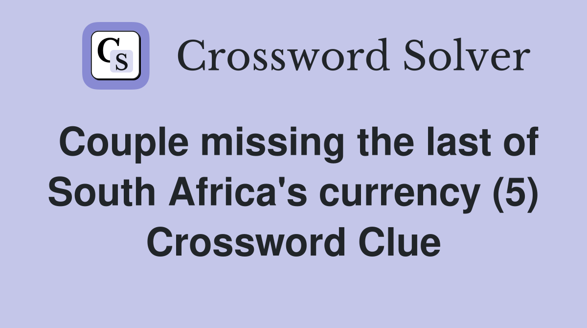 Couple missing the last of South Africa #39 s currency (5) Crossword Clue