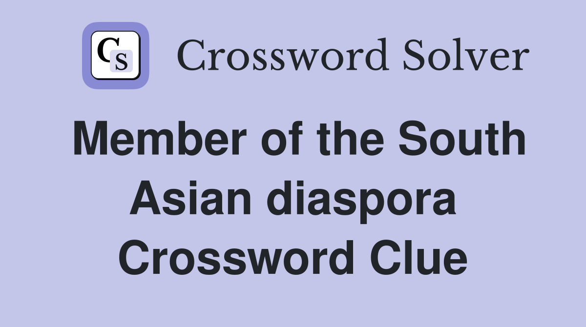 Member of the South Asian diaspora Crossword Clue Answers Crossword