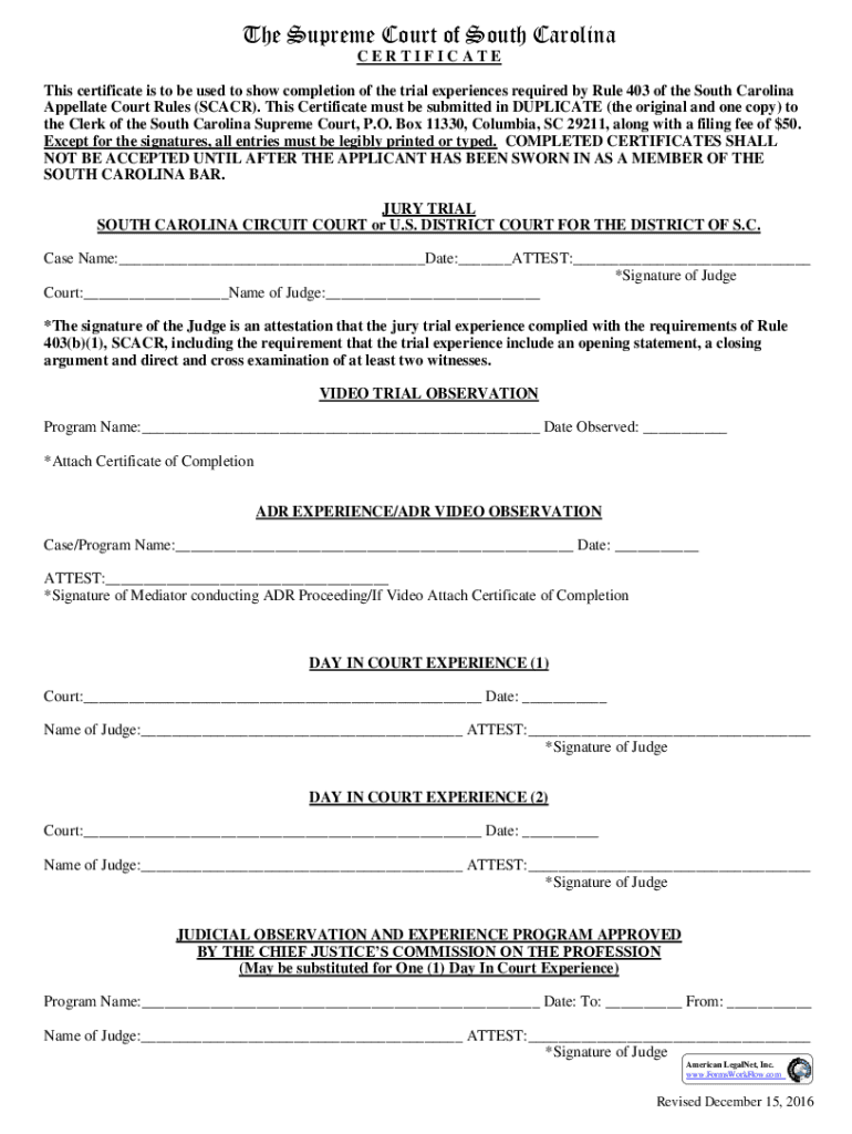 Fillable Online Certificate Rule 403 :: South Carolina :: Appellate