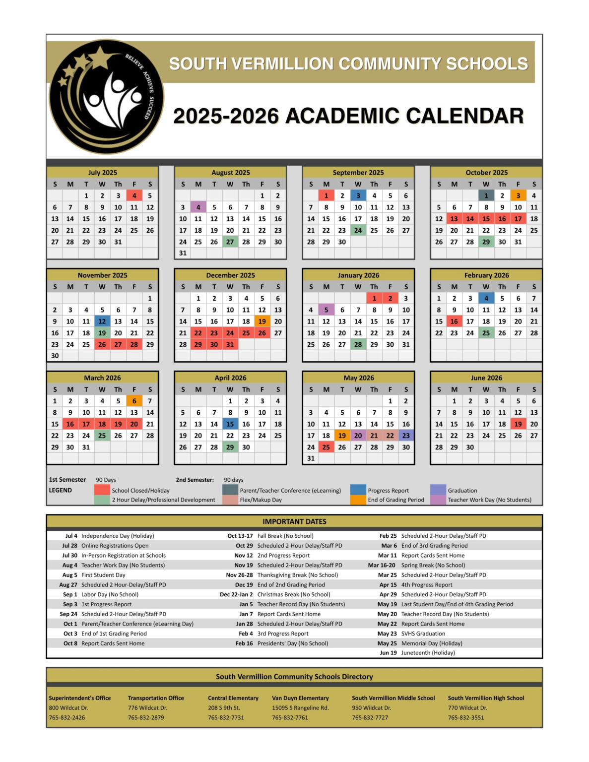 SOUTH VERMILLION COMMUNITY SCHOOLS Calendar 25 26 Revised PDF EduCounty