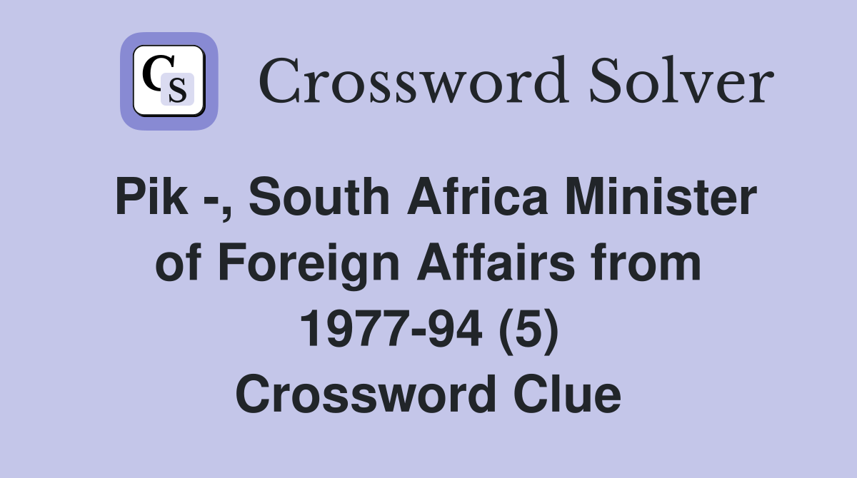 Pik South Africa Minister of Foreign Affairs from 1977 94 (5