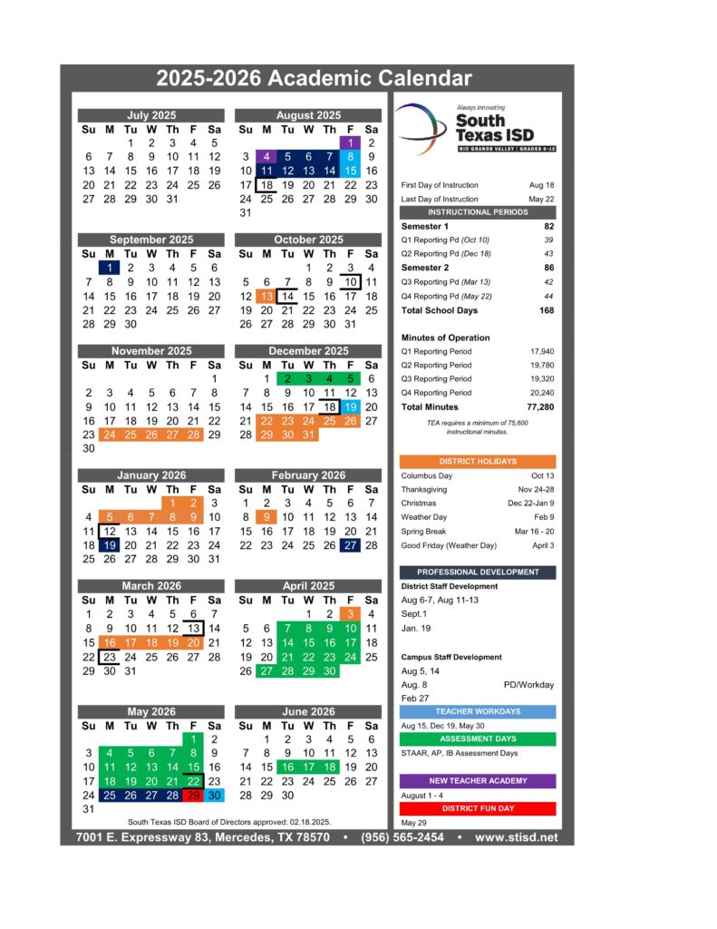 South Texas ISD School Calendar 25 26 PDF EduCounty